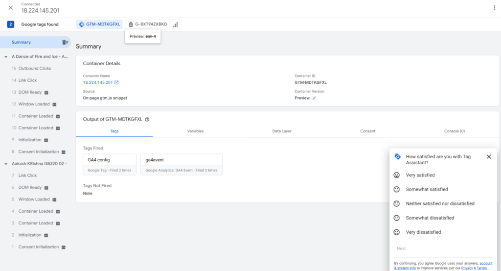 I started by creating a default event that is affected by webpage initialization, a.k.a. when someone opens my website for the first time. I also created an event with the trigger being clicking on any link on the website. This could include links to external sites through references, or links to other posts on my page.